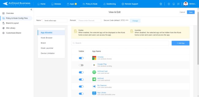 Nun können Sie die Berechtigung für AirDroid Biz Daemon erteilen und den Kioskmodus einrichten.